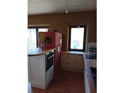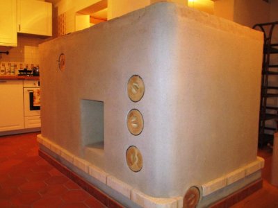 ...V kamnech letos topíme druhým rokem. Spotřebujeme cca 6 metrů dřeva za sezonu, což je vzhledem k faktu, že ještě nemáme venkovní fasádu, úplně skvělé!! Kamna jsem ještě nečistil, takže nevím v jakém jsou stavu uvnitř...Hypokaust funguje bezvadně. Zatím nebylo potřeba vůbec dotápět podkroví. Spodní koupelnu samozřejmě lehce temperujeme přímotopem. Kamna v tomto ohledu rozhodně předčila naše očekávání. Často se stane, že i po 24 hodinách, stačí pouze rozhrábnout popel a topí se dál. Teplo je to moc příjemné. Oproti jiným typům vytápění hodně rovnoměrné. Sporák používáme hlavně o víkendech. V troubě převážně maso. Buchtu nebo chleba by jsme tam asi neupekly...