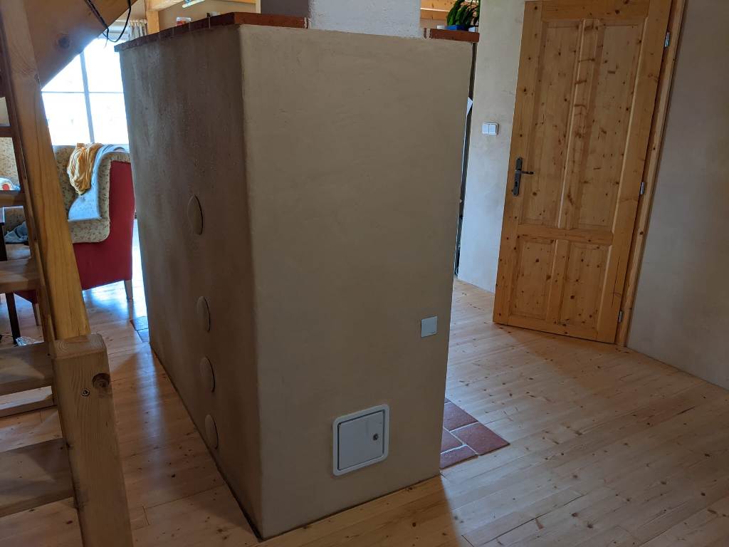 - celková účinnost 79 %, tj. z 1 kg (4 KW) suchého dříví uložíte do hmoty cca 3,2 KW energie.