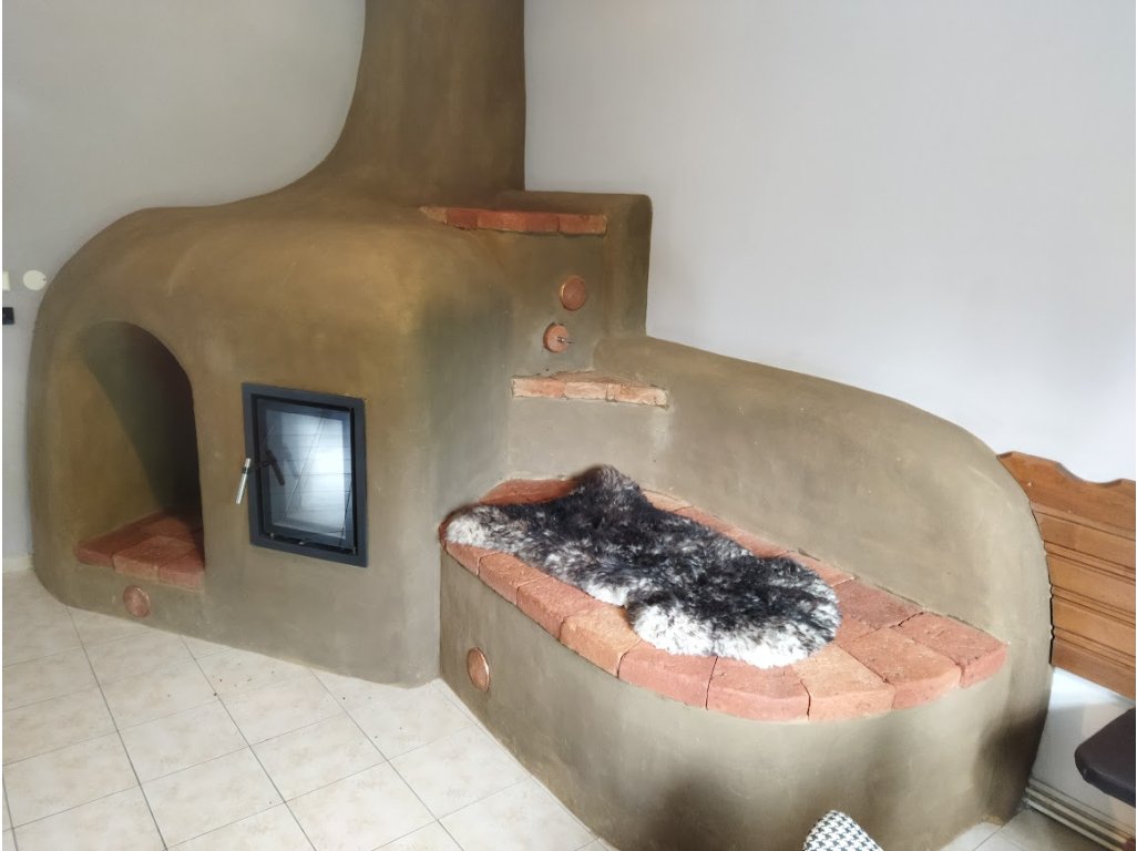 Akumulační kamna vytápí celou velkou společenskou místnost penzionu prostřednictvím sálavých ploch, ale také za pomocí radiátorů, do kterých proudí ohřátá voda z kamen. Kromě toho si můžete na kamna lehnout a užít si opravdový relax na natemperované cihelné dlažbě.
