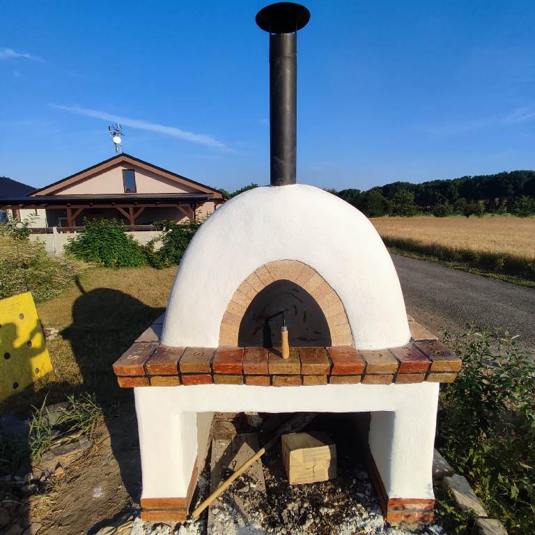 Svépomocná stavba malé zahradní hliněné pece. Svépomocný stavitel postavil pec podle pokynů Výukového programu - https://www.hlinenakamna.cz/stavba-zahradni-pece-vyukovy-program
